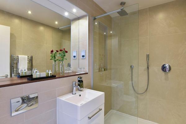 Serviced apartments with 24 hour reception and security.